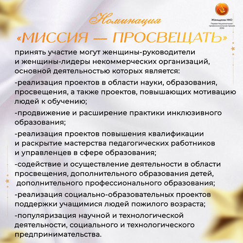 ЖЕНЩИНА - РУКОВОДИТЕЛЬ НЕКОММЕРЧЕСКОЙ ОРГАНИЗАЦИИ