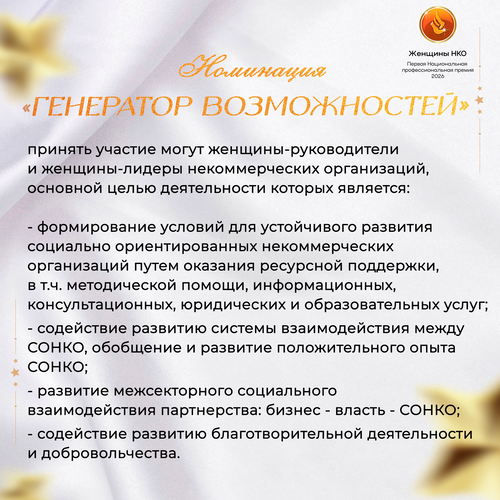 ЖЕНЩИНА - ЛИДЕР НЕКОММЕРЧЕСКОЙ ОРГАНИЗАЦИИ